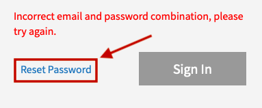 Error Message: "Incorrect email and password combination, please try again."